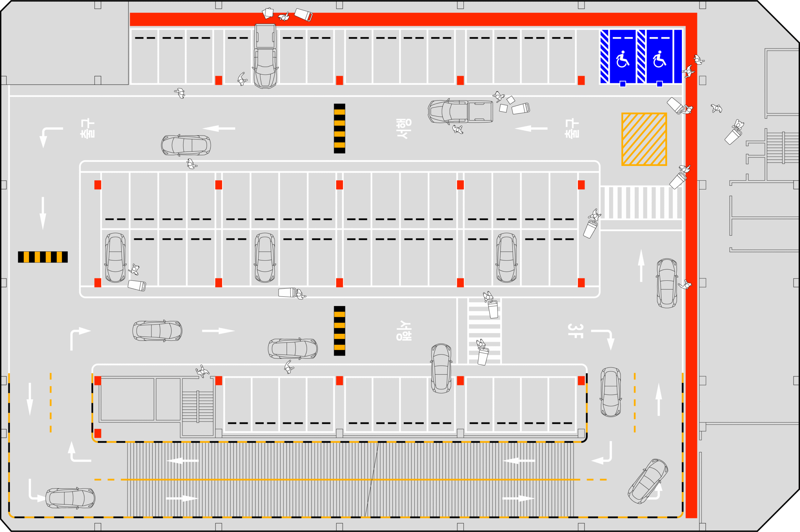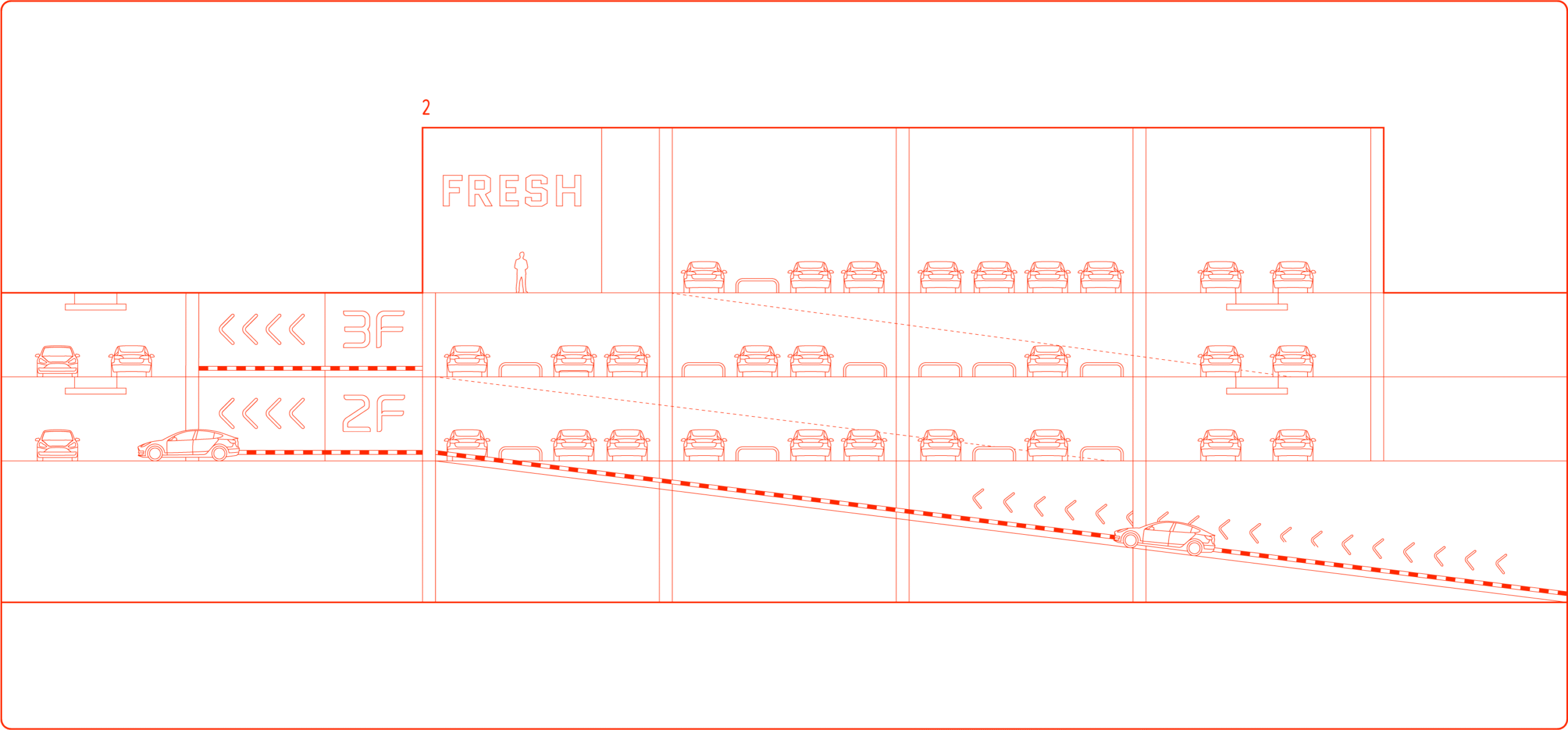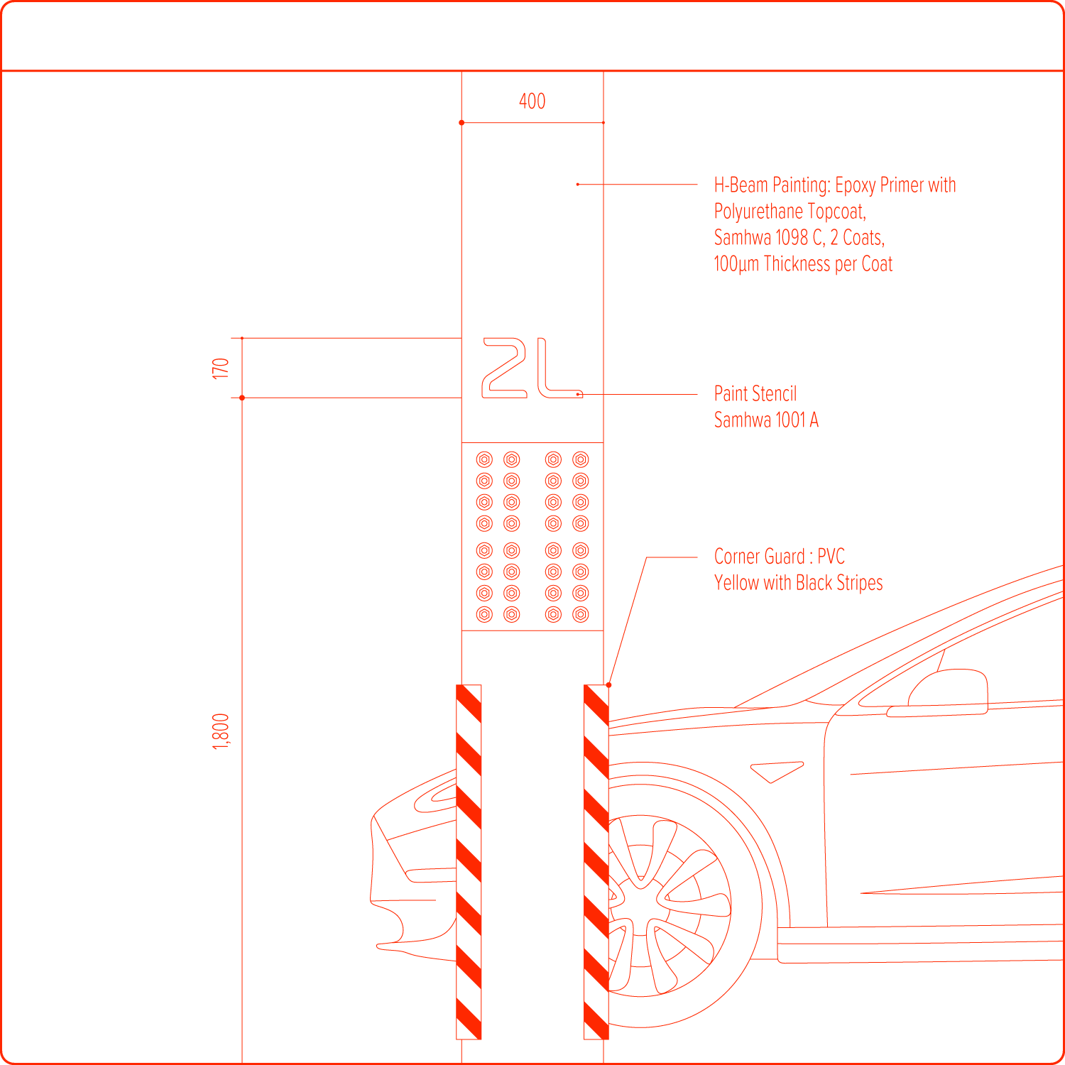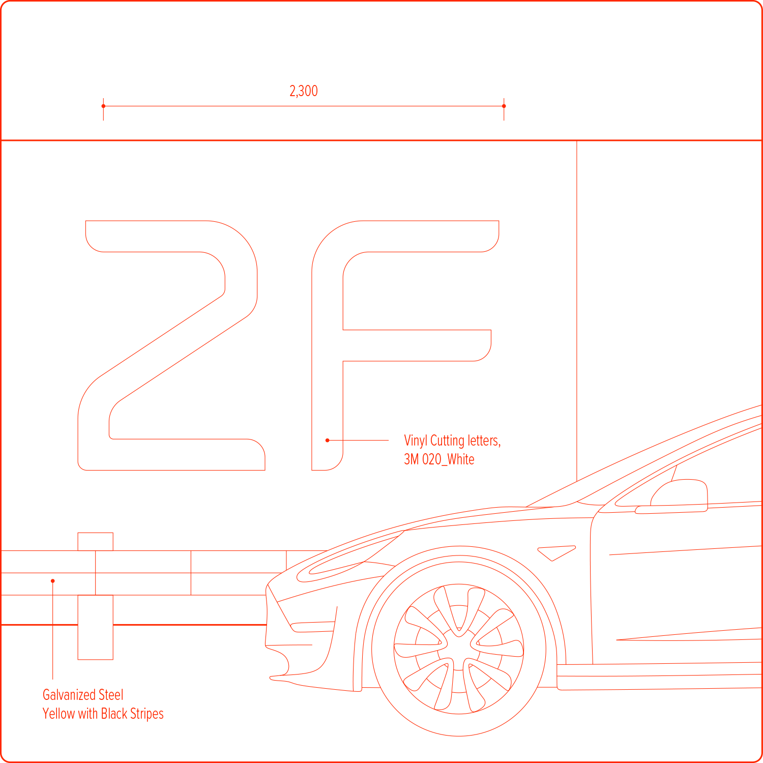 주차공간에서 브랜드의 색채와 정체성을 어떻게 구조와 그래픽에 반영해, 이용자의 동선을 안전하고 직관적으로 안내하며 동시에 브랜드와 고객의 연결을 강화할 수 있을까?